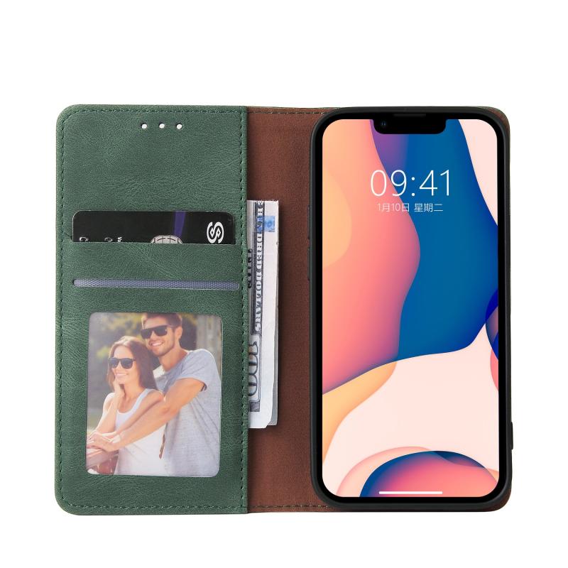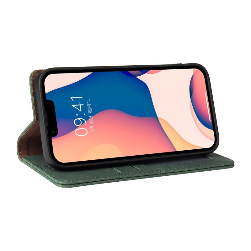 Για iPhone 14 Plus Δερμάτινη Θήκη Flip με Κλείσιμο Αναρρόφησης (Πράσινο)