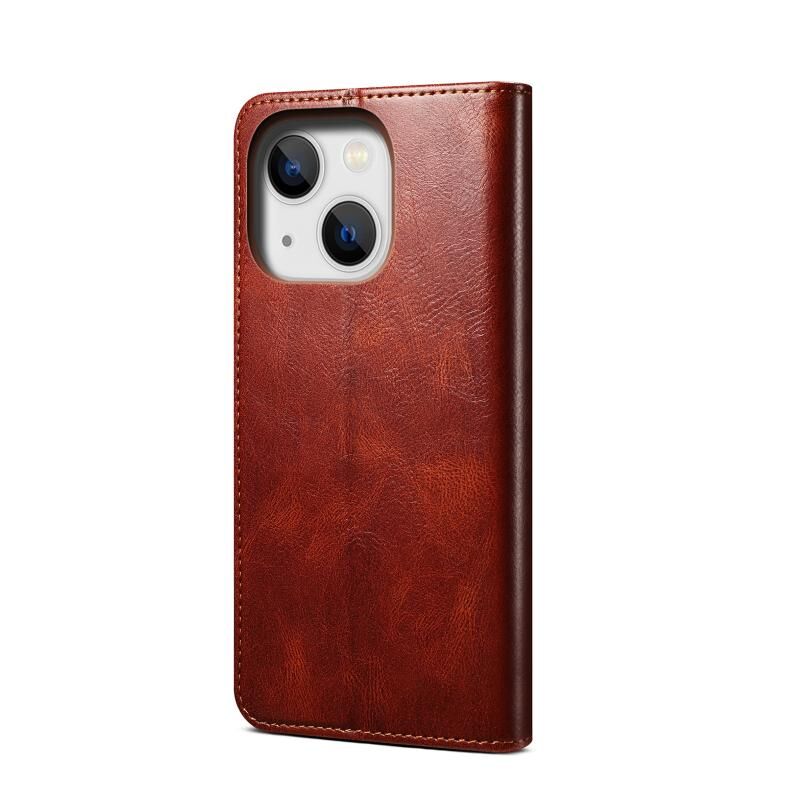 Θήκη δέρματος οριζόντιας αναδίπλωσης για iPhone 14 Plus, απλή, με τρελό άλογο και υφή κεριού (Καφέ)