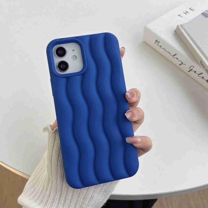 Θήκη τηλεφώνου για iPhone 14 Plus με αίσθηση δέρματος, 3D υφή κυμάτων νερού (Μωβ)