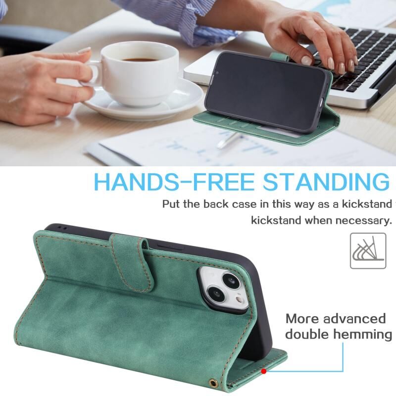 Θήκη τηλεφώνου δέρμα τύπου flip οριζόντια, αντι-κλοπής, με αίσθηση δέρματος για iPhone 14 Plus (Καφέ)