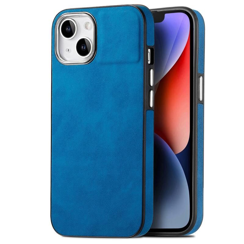 Θήκη κινητού τηλεφώνου για iPhone 14 Plus με αίσθηση δέρματος, ηλεκτρολυτική επίστρωση TPU, αντικραδασμική (Μαύρο)