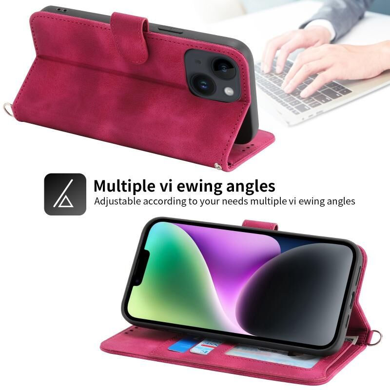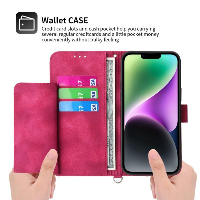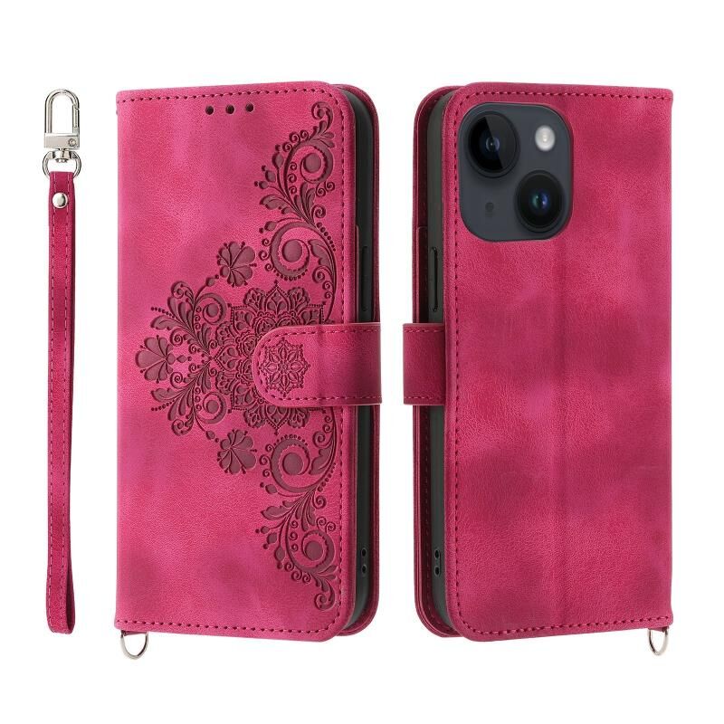 Θήκη τηλεφώνου από δέρμα με ανάγλυφα λουλούδια και αίσθηση δέρματος για iPhone 14 Plus (Ροζ)