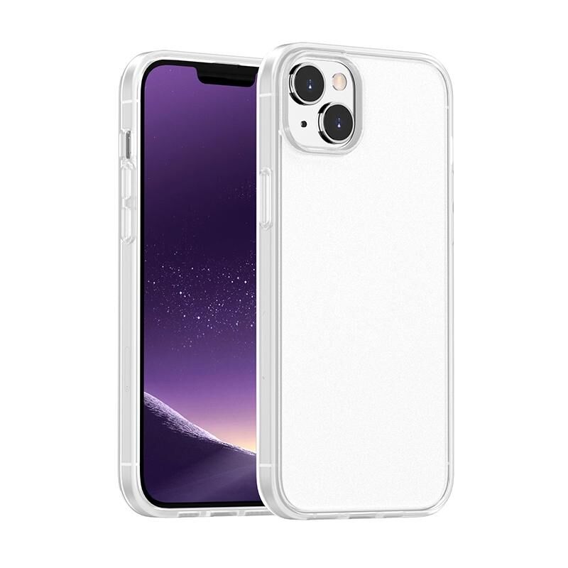 Θήκη τηλεφώνου για iPhone 14 Plus με αίσθηση δέρματος, ματ χρώμα, λευκό κουμπί (Λευκό)