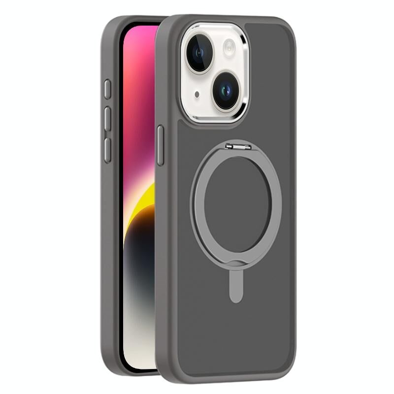Θήκη τηλεφώνου για iPhone 14 Plus με αίσθηση δέρματος, ματ φινίρισμα, MagSafe, μαγνητική περιστρεφόμενη βάση (Σκούρο Γκρι)