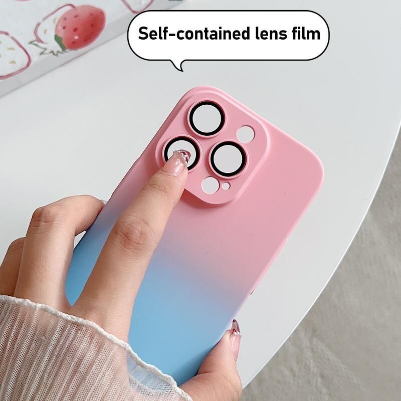 Θήκη τηλεφώνου με αίσθηση δέρματος και διαβάθμιση χρώματος για iPhone 14 Plus (Ανοιχτό Πορτοκαλί + Κίτρινο)