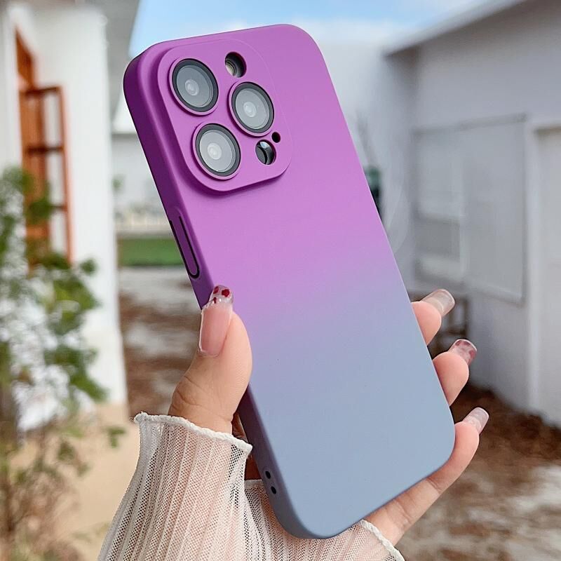 Θήκη τηλεφώνου με αίσθηση δέρματος και διαβάθμιση χρώματος για iPhone 14 Plus (Ανοιχτό Πορτοκαλί + Κίτρινο)