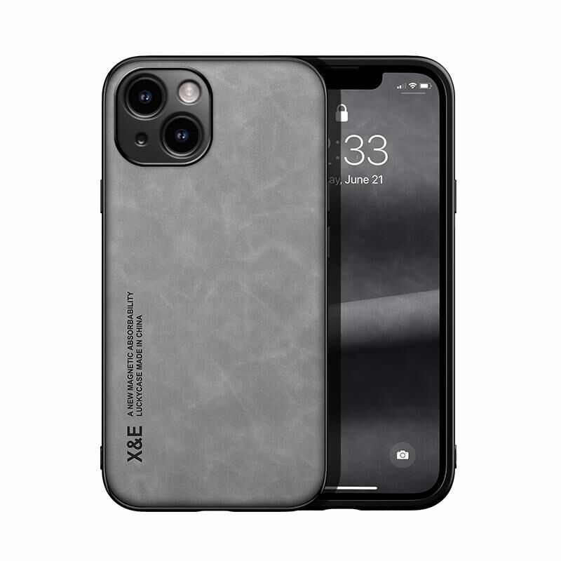 Θήκη για iPhone 14 Plus με υφή δέρματος και μαγνητική βάση (Ανοιχτό Γκρι)