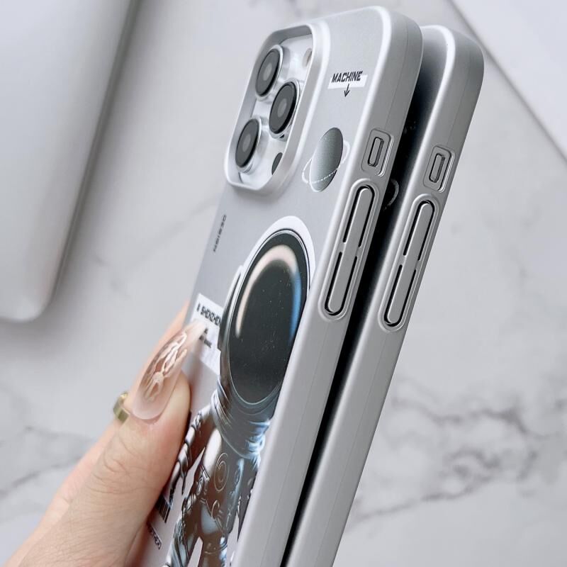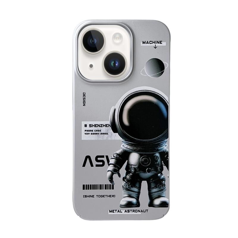 Θήκη κινητού τηλεφώνου για iPhone 14 Plus με υφή δέρματος και σχέδιο από πολυανθρακικό (Positive Metal Astronaut)