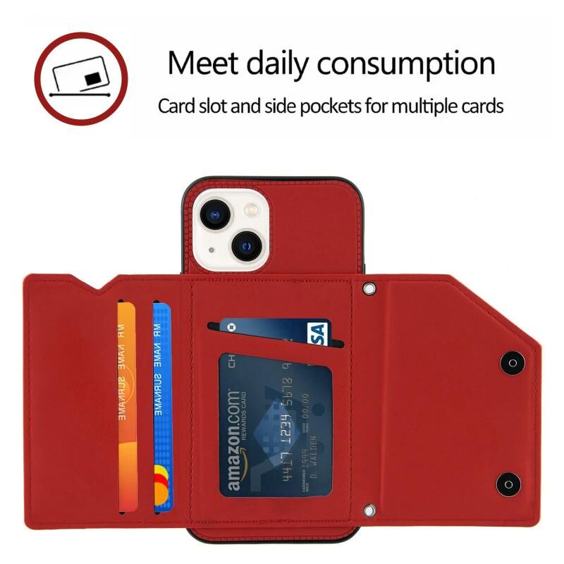 Θήκη για iPhone 14 Plus με αίσθηση δέρματος, PU + TPU + PC, αντικραδασμική, πίσω κάλυμμα (Βασιλικό Μπλε)