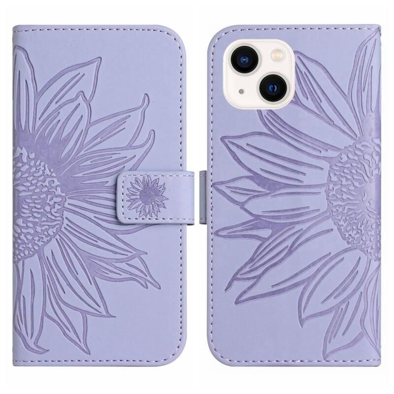 Θήκη τηλεφώνου από δέρμα με σχέδιο ηλιοτρόπιου και αίσθηση δέρματος για iPhone 14 Plus, με λουρί (Κόκκινο)