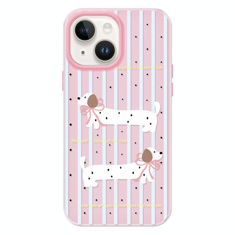 Θήκη τηλεφώνου για iPhone 14 Plus, υβριδική από TPU και PC με αίσθηση ζελέ (Line Puppy Yellow)