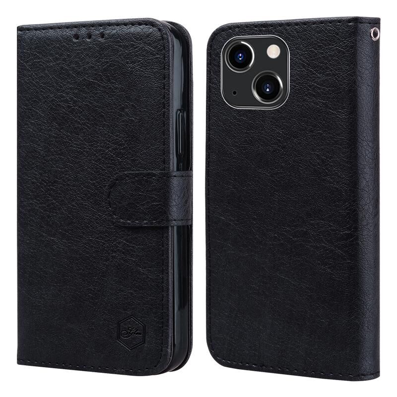 Θήκη τηλεφώνου για iPhone 14 Plus με υφή δέρματος λαδιού και αίσθηση δέρματος, κατασκευασμένη από PU + TPU (Μαύρο)