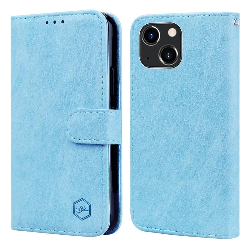 Θήκη τηλεφώνου για iPhone 14 Plus με υφή δέρματος λαδιού και αίσθηση δέρματος, κατασκευασμένη από PU + TPU (Μαύρο)