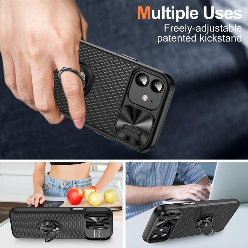 For iPhone 14 Plus Sliding Camshield Armor Phone Case with Ring Holder(Black)