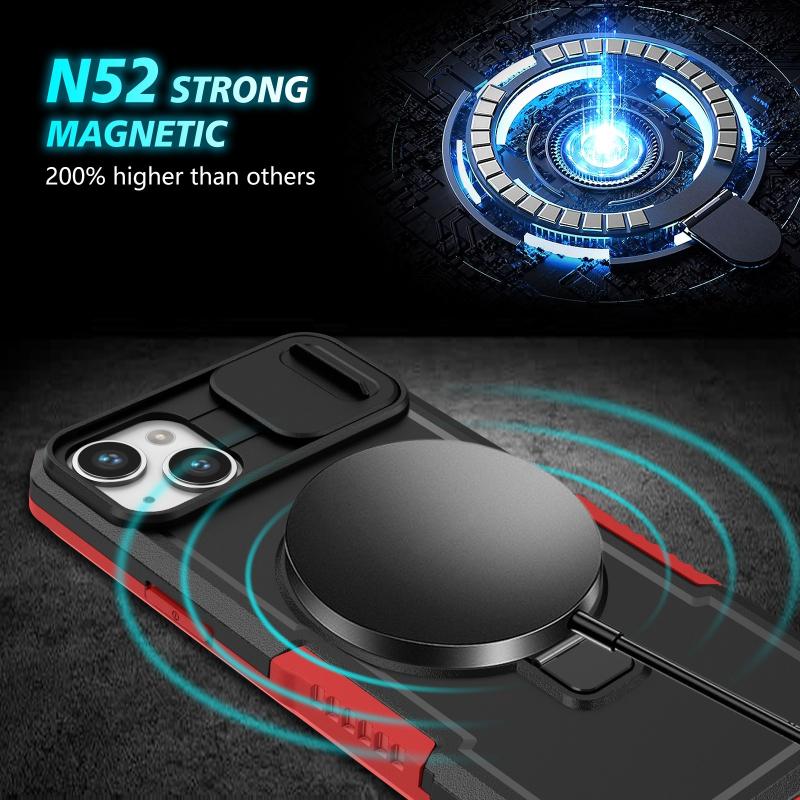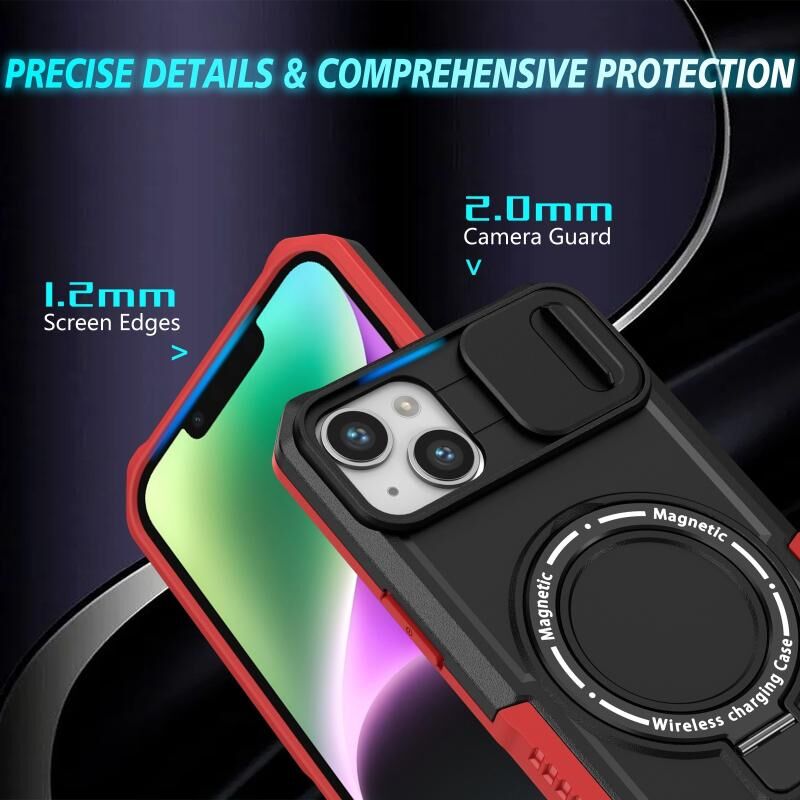 Θήκη iPhone 14 Plus με MagSafe, Συρόμενο Κάλυμμα Κάμερας & Υβριδικό Σχεδιασμό (Μαύρο Κόκκινο)