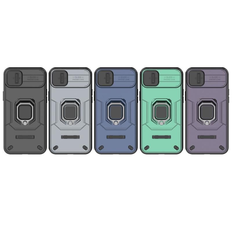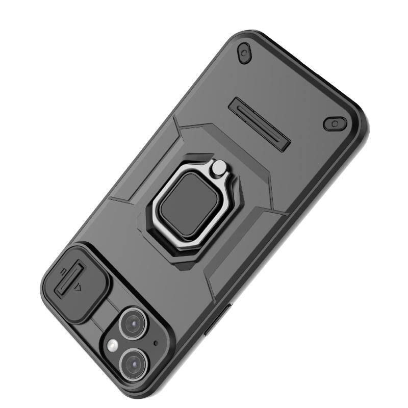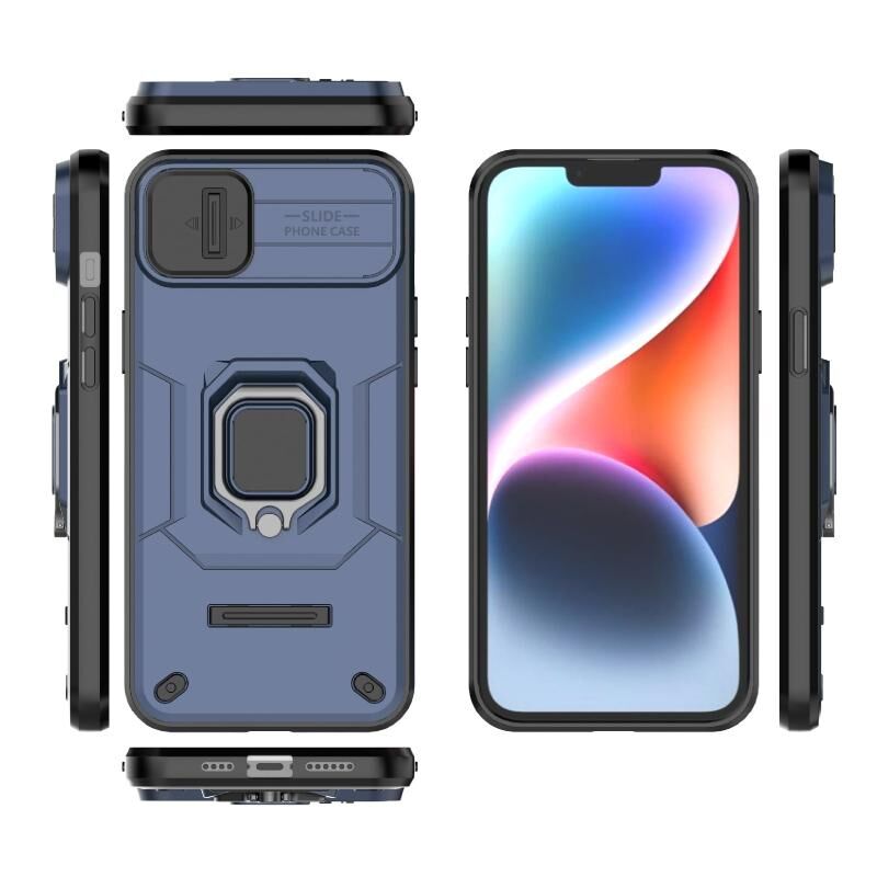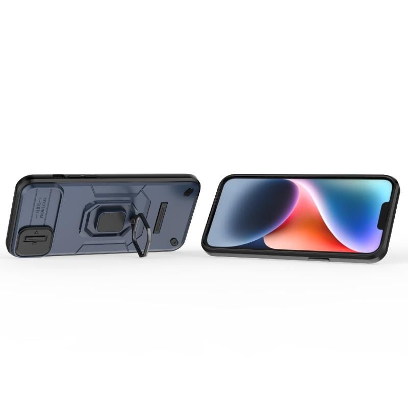 Θήκη κινητού τηλεφώνου για iPhone 14 Plus με ολισθαίνουσα προστασία κάμερας Camshield, κατασκευασμένη από TPU + PC, ανθεκτική σε κρούσεις και με βάση στήριξης (Γκρι)