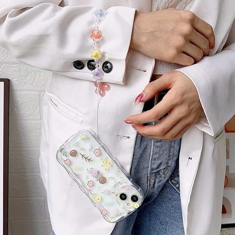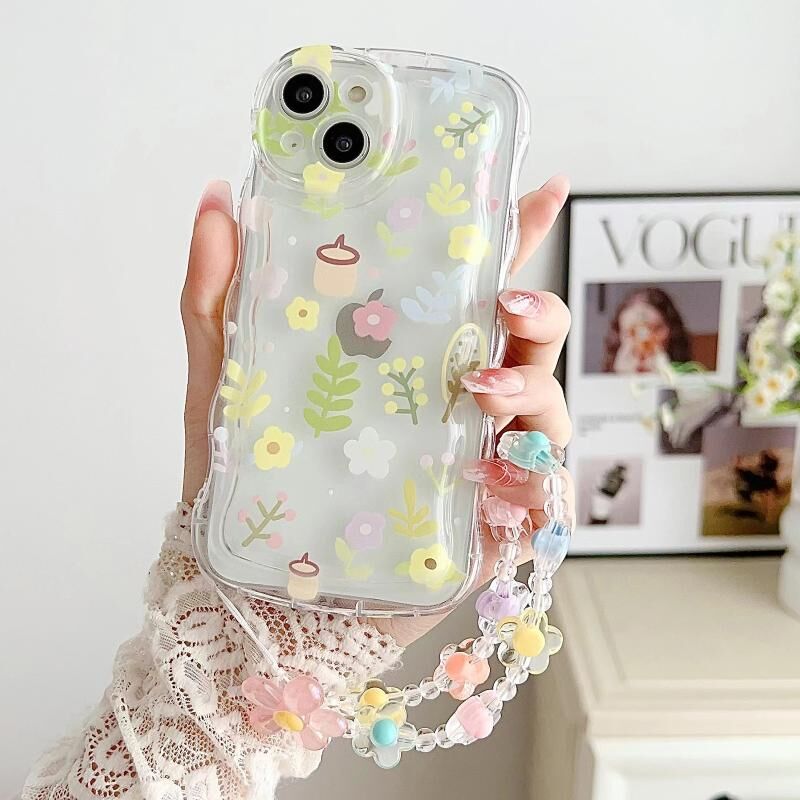 Θήκη τηλεφώνου για iPhone 14 Plus, μικρή με λουλούδια και βραχιόλι (Πράσινο Κλαδί)