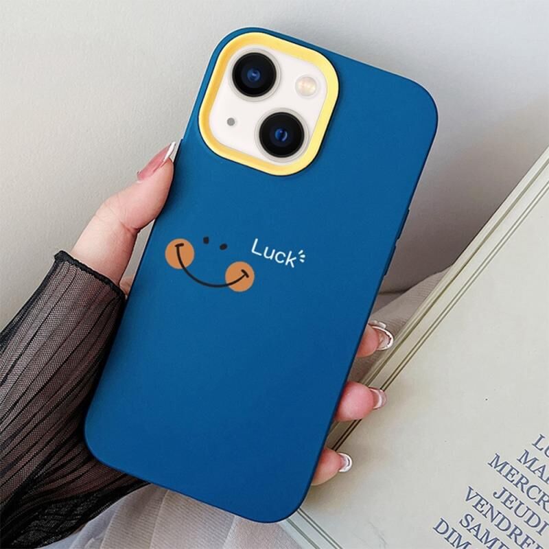 Θήκη τηλεφώνου για iPhone 14 Plus, Υβριδική TPU από PC με χαμογελαστό πρόσωπο (Βασιλικό Μπλε)