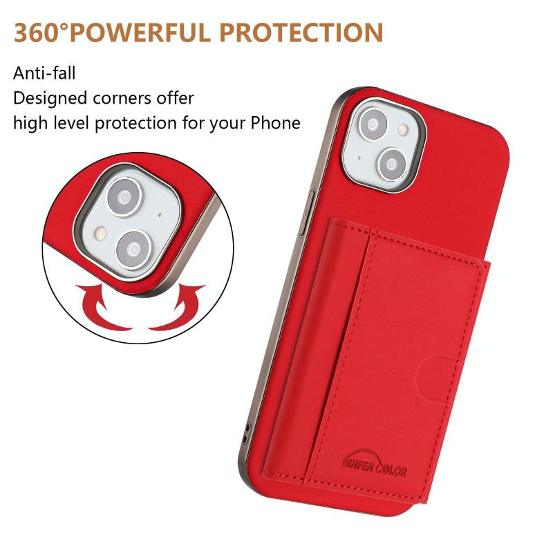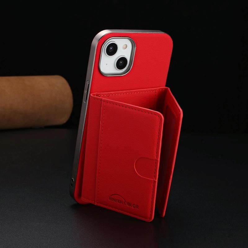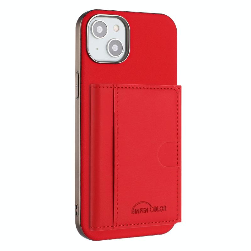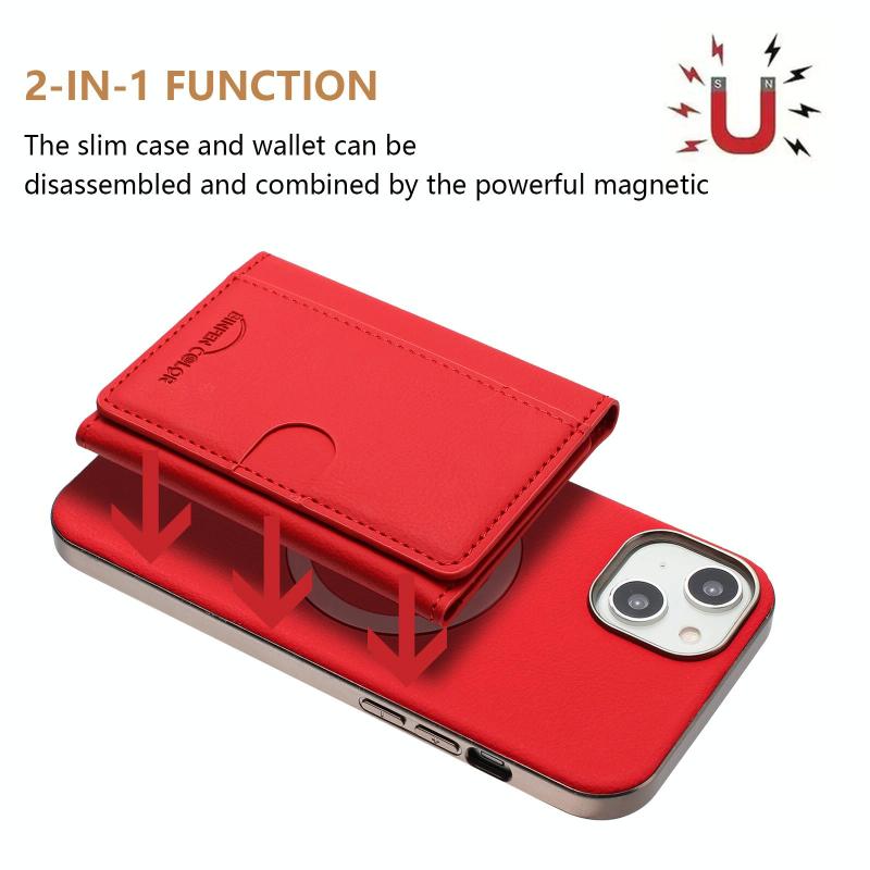 For iPhone 14 Plus Solid Color Horizontal Magnetic Card Bag RFID MagSafe Phone Case(Red)