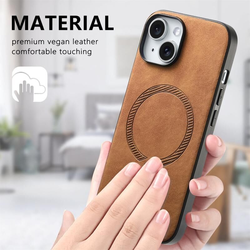 Θήκη κινητού τηλεφώνου για iPhone 14 Plus, μονόχρωμη, ρετρό, με MagSafe και πίσω όψη από PU (Μωβ)