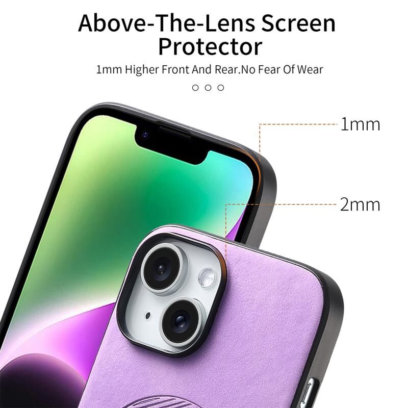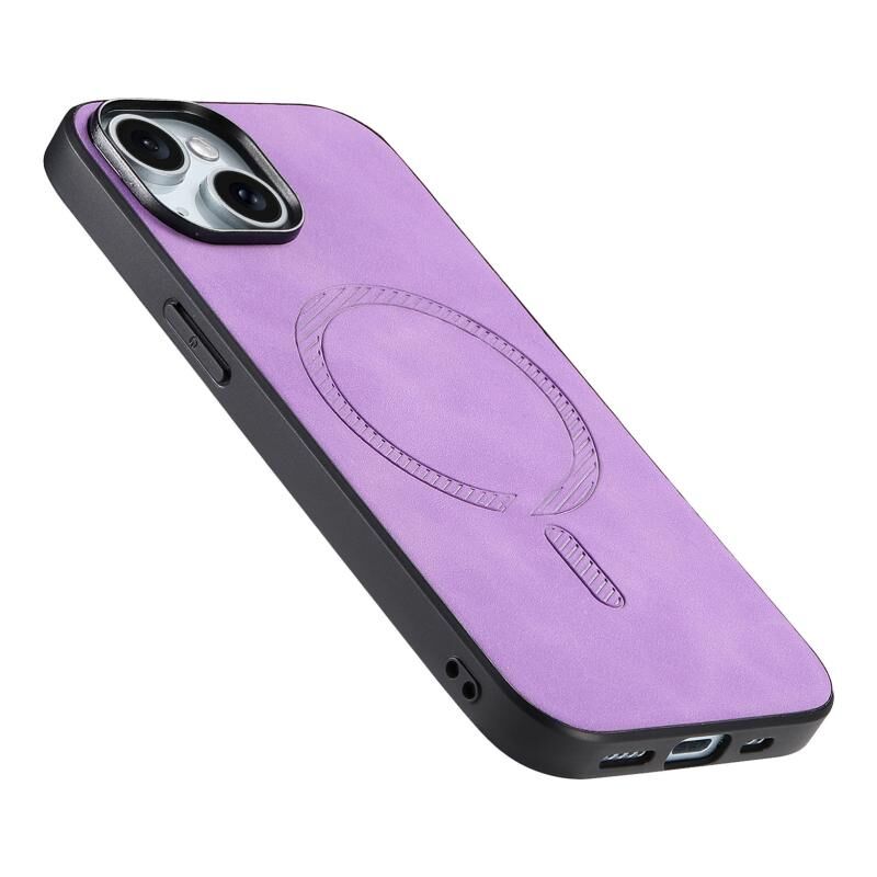 Θήκη κινητού τηλεφώνου για iPhone 14 Plus, μονόχρωμη, ρετρό, με MagSafe και πίσω όψη από PU (Μωβ)