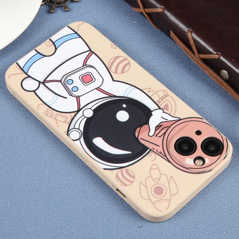 Θήκη τηλεφώνου για iPhone 14 Plus Spaceman Κιάλια (Μπεζ + Ροζ)