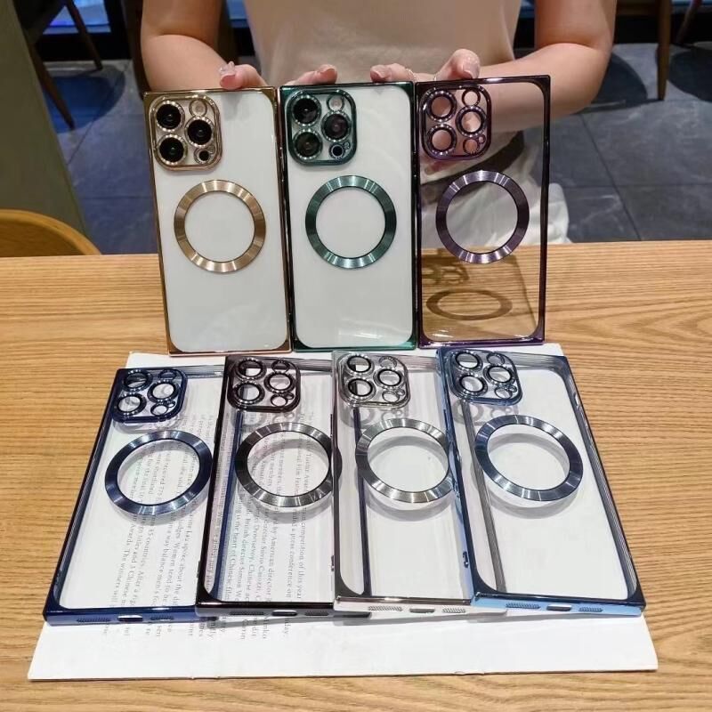 Θήκη τηλεφώνου για iPhone 14 Plus, Τετράγωνη, Magsafe, Ηλεκτρολυτική Επικάλυψη, TPU (Μαύρο)