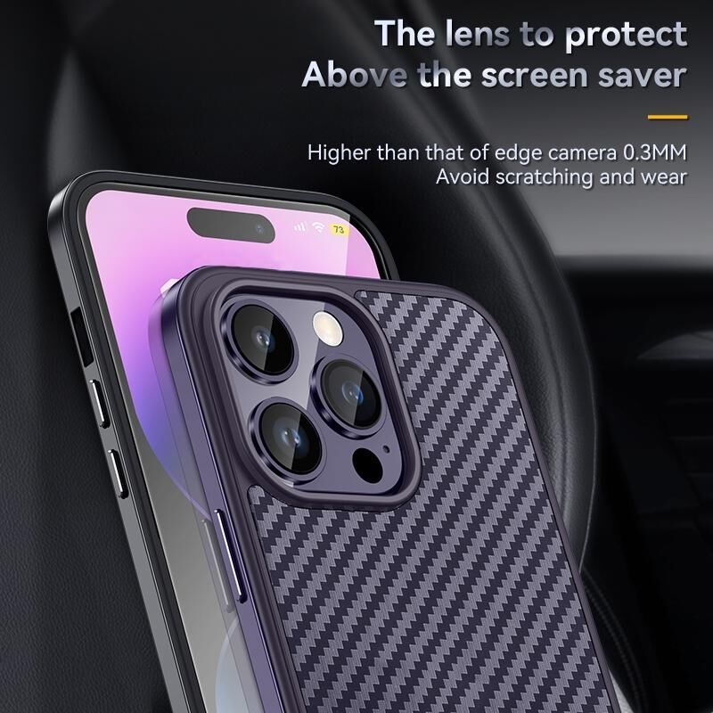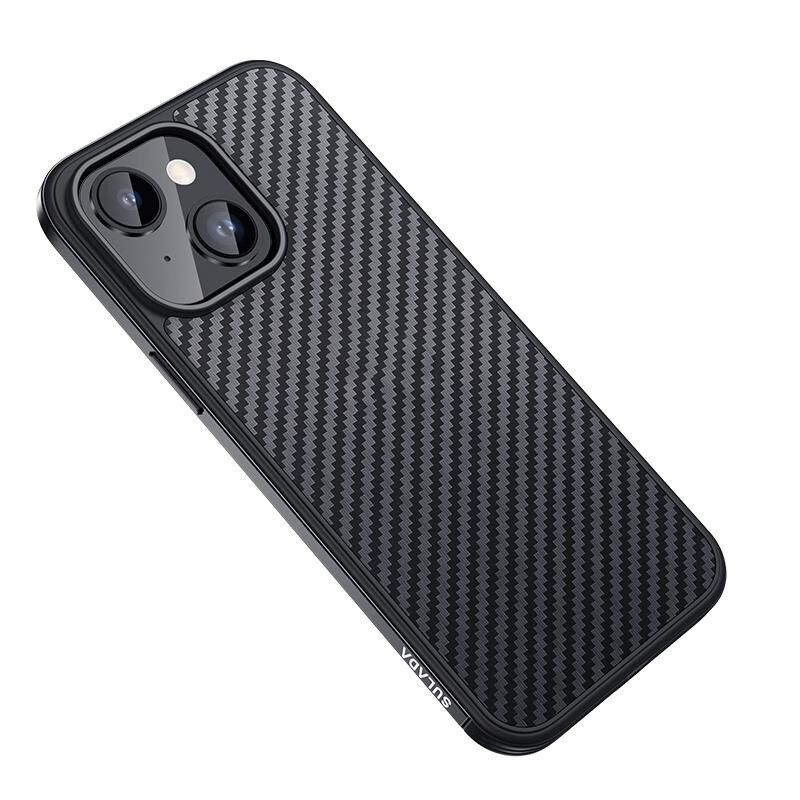 Θήκη για iPhone 14 Plus SULADA από ανθρακονήματα με υφή, ανθεκτική σε κρούσεις, με μεταλλικό + πλαίσιο TPU (Σκούρο Πράσινο) (SULADA)
