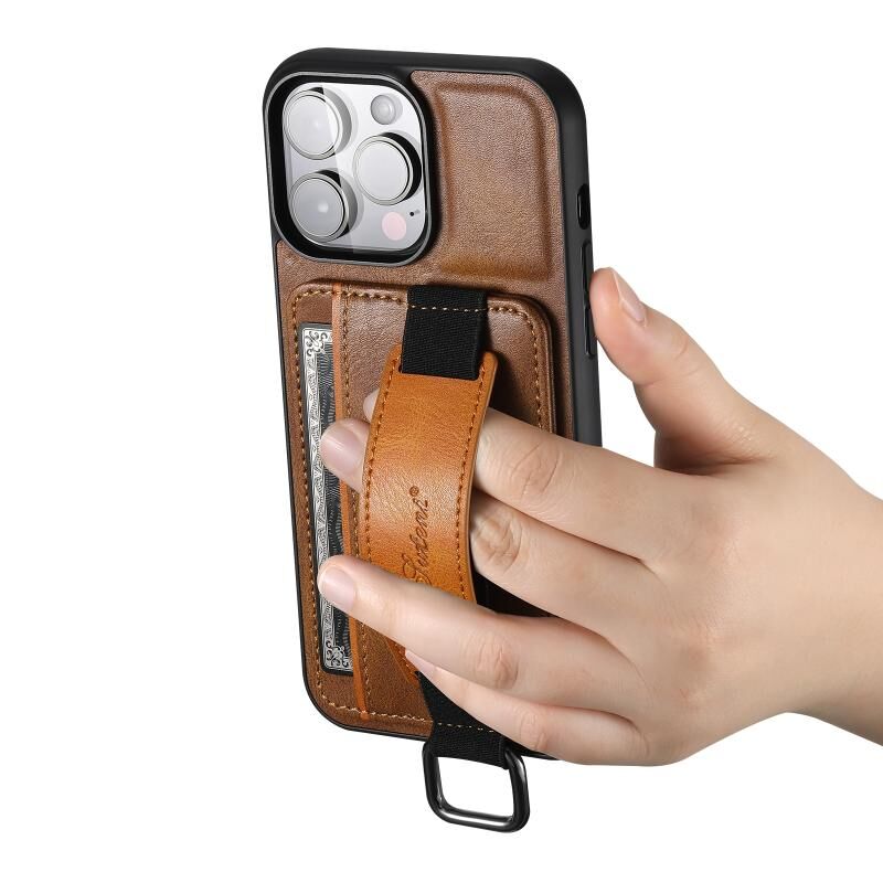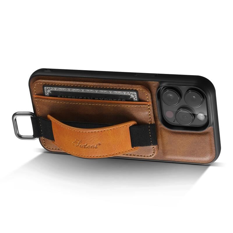 Θήκη κινητού τηλεφώνου Suteni H13 για iPhone 14 Plus με κάρτες, λουρί καρπού και υλικό PU (Μαύρο) (Suteni)