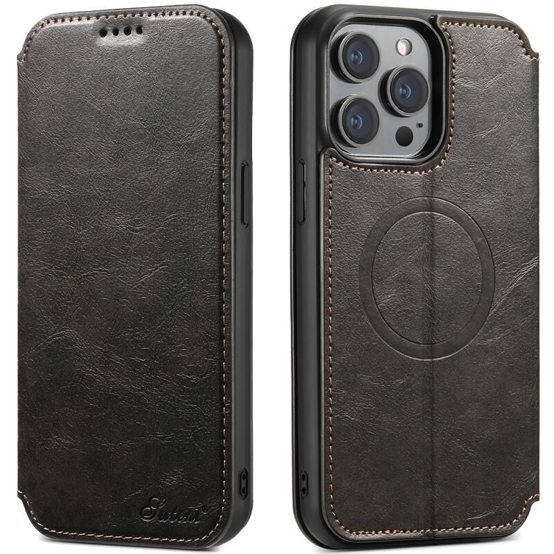 Θήκη τηλεφώνου Suteni J05 από δέρμα με μαγνητική σύνδεση MagSafe για iPhone 14 Plus (Μαύρο) (Suteni)