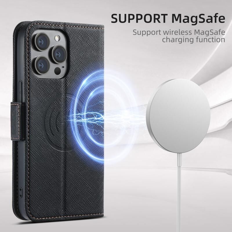 Θήκη τηλεφώνου Suteni J08 πολυλειτουργική με υφή σταυρού MagSafe από δέρμα για iPhone 14 Plus (Μαύρο) (Suteni)