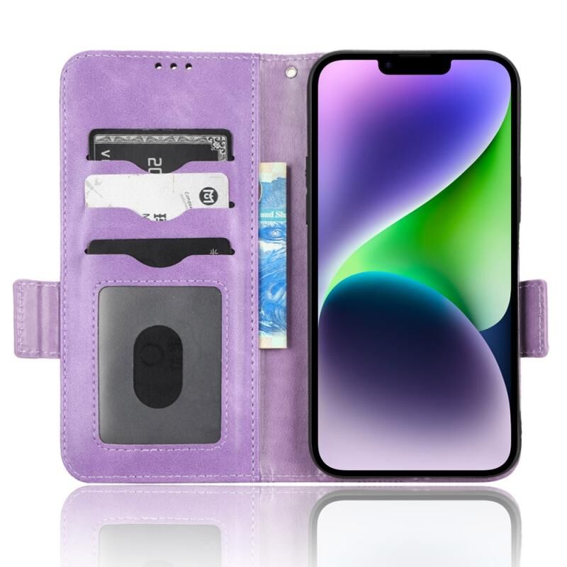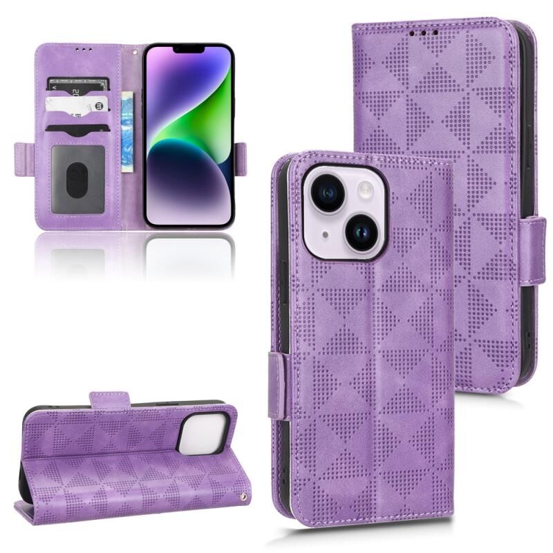 For iPhone 14 Plus Symmetrical Triangle Leather Phone Case(Purple)