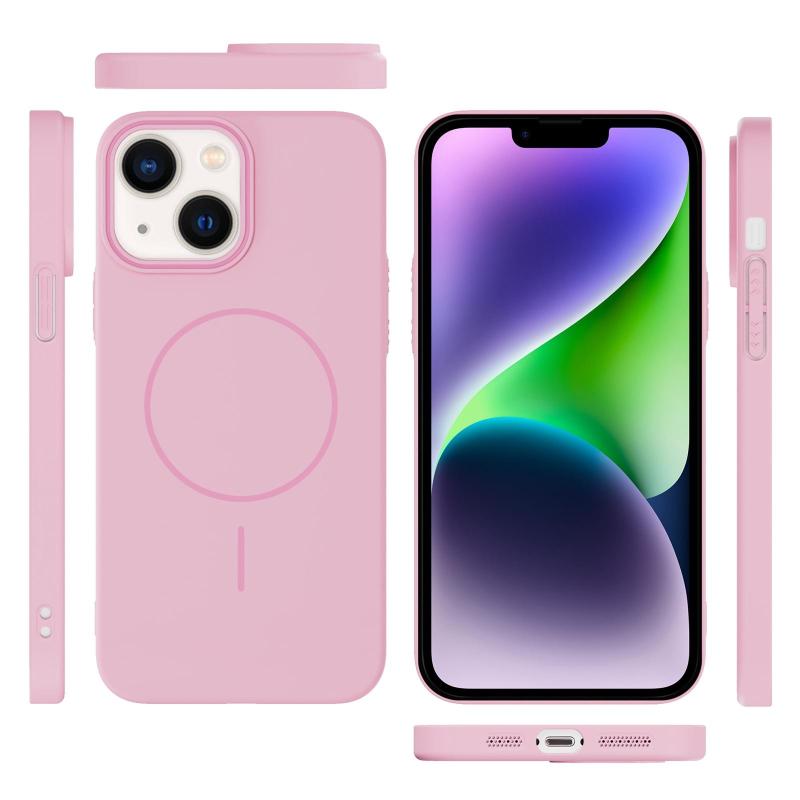 For iPhone 14 Plus Thin Circle PC Injection MagSafe Phone Case(Cherry Pink)