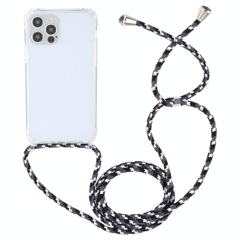 Θήκη προστασίας κινητού τηλεφώνου για iPhone 14 Plus, διαφανές ακρυλικό, αντικραδασμική με αερόσακο και κορδόνι (Ροζ Απρίκοτο Καφέ)