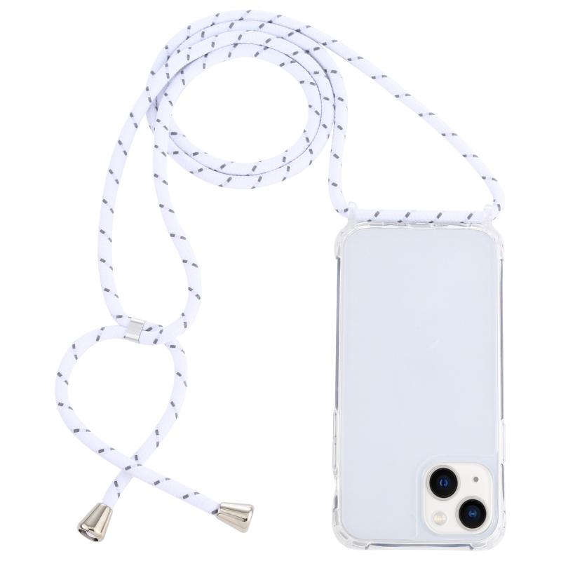 Θήκη προστασίας κινητού τηλεφώνου για iPhone 14 Plus, διαφανές ακρυλικό, αντικραδασμική με αερόσακο και κορδόνι (Ροζ Απρίκοτο Καφέ)