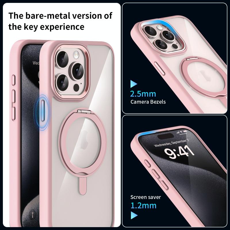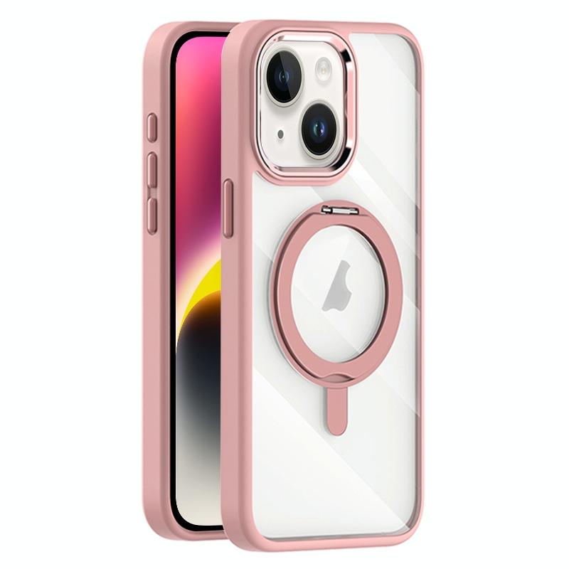 Θήκη iPhone 14 Plus Διαφανής Μαγνητική Περιστρεφόμενη Βάση MagSafe (Ροζ)