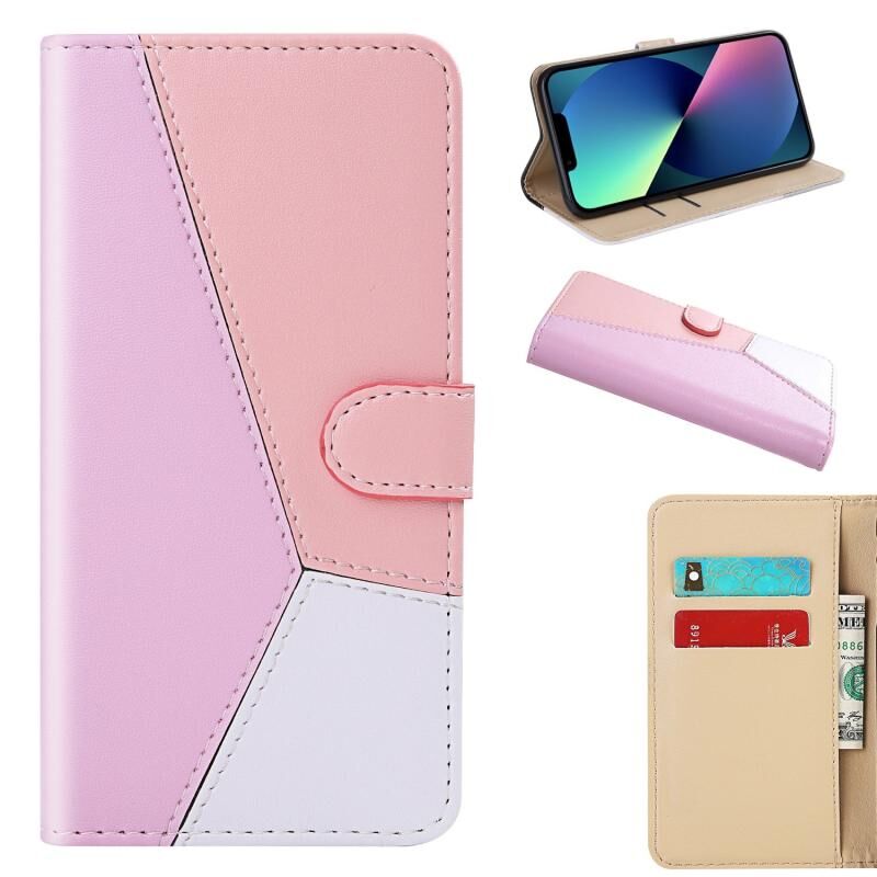 Θήκη τηλεφώνου από δέρμα με πτερύγιο για iPhone 14 Plus, με τριχρωμία ραφής (Μπλε)