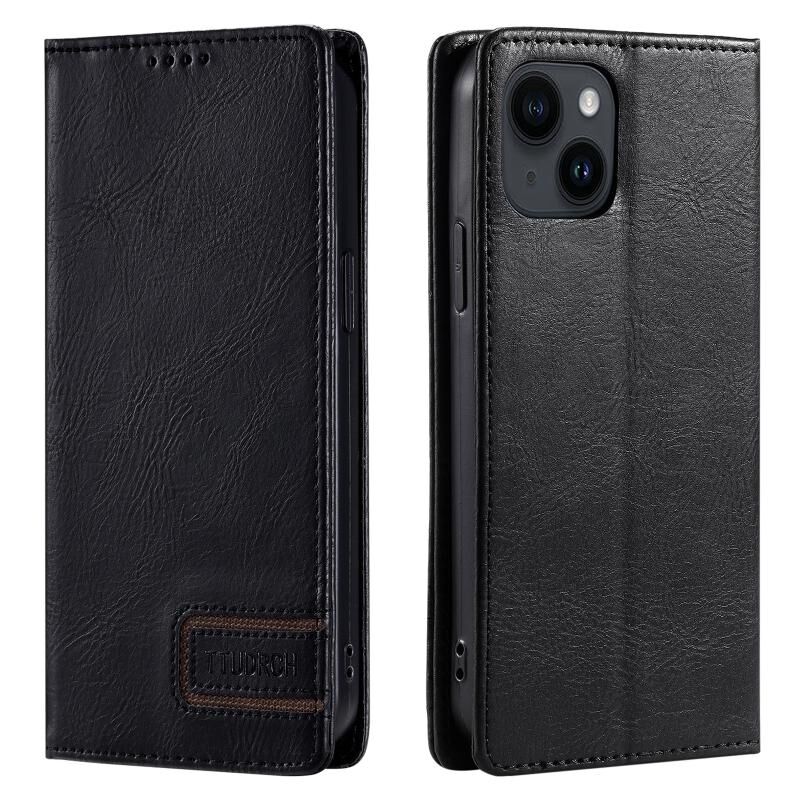 Θήκη τηλεφώνου από δέρμα με μαγνητική υφή retro και προστασία RFID για iPhone 14 Plus TTUDRCH (Μαύρο)