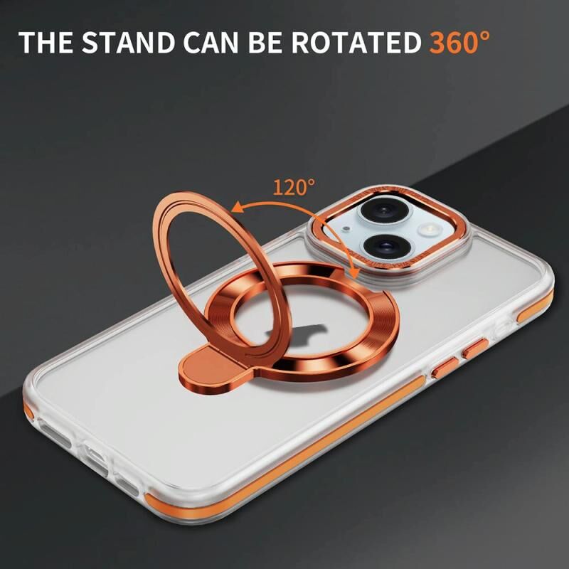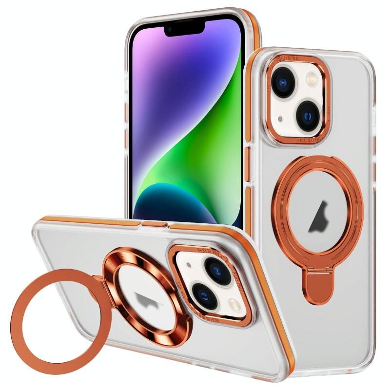 For iPhone 14 Plus Two Color TPU Hybrid Acrylic MagSafe Magnetic Holder Phone Case(Orange)