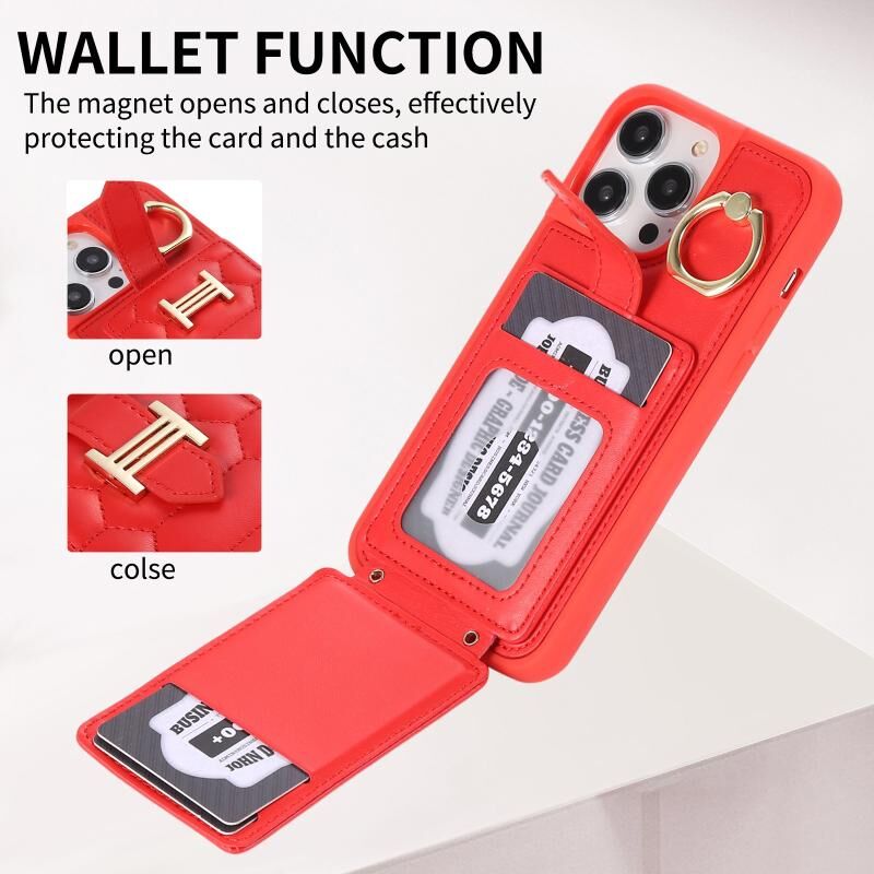 Θήκη τηλεφώνου με δακτύλιο στήριξης και διπλό κορδόνι για iPhone 14 Plus, κάθετη θήκη καρτών (Μωβ σκούρο)