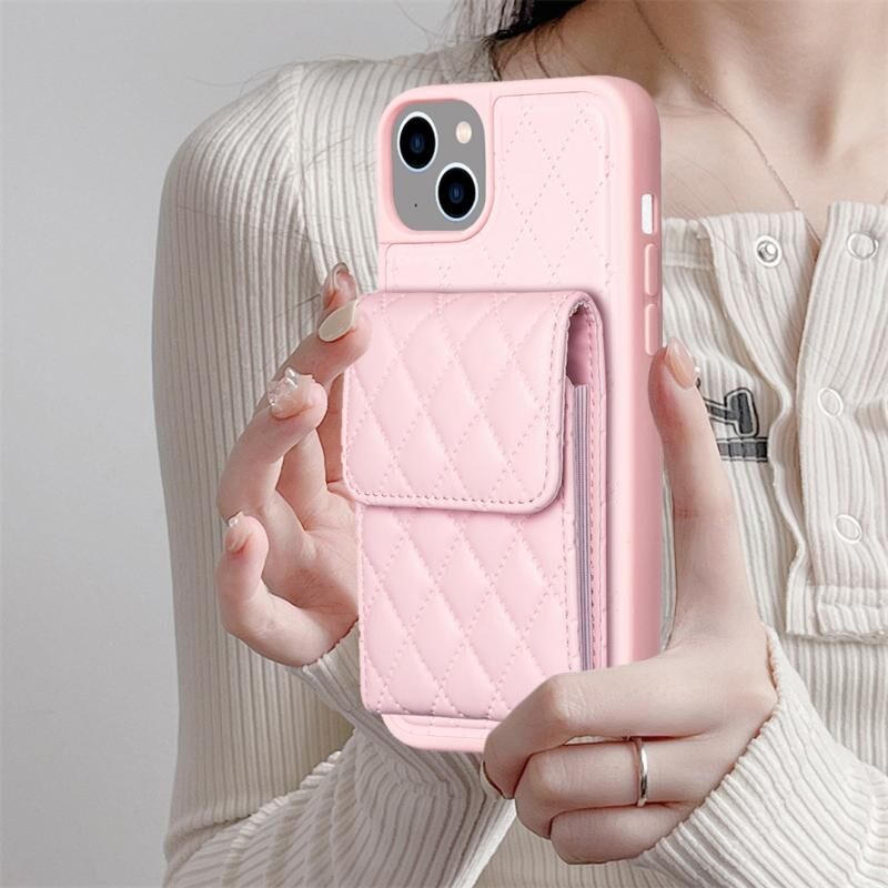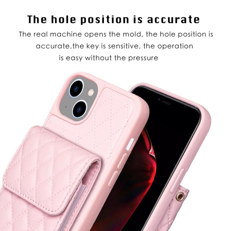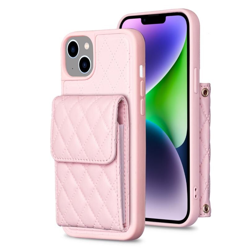 Θήκη τηλεφώνου κάθετης τσέπης για iPhone 14 Plus, δερμάτινη με ρόμβους (Ροζ)