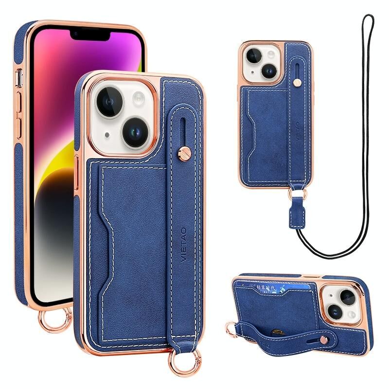 Θήκη κινητού τηλεφώνου VIETAO για iPhone 14 Plus με θήκη κάρτας και λουρί καρπού (Μπλε) (VIETAO)