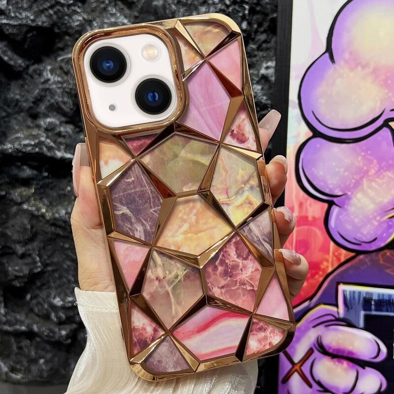 Θήκη τηλεφώνου για iPhone 14 Plus, Κύβος Νερού, Μάρμαρο, Ηλεκτρολυτική Επικάλυψη TPU (Χρυσό)