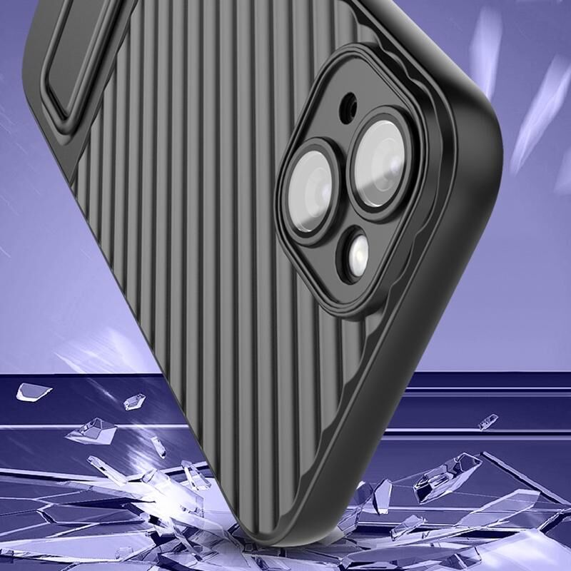 Θήκη τηλεφώνου TPU με κυματιστή υφή για iPhone 14 Plus με προστατευτική μεμβράνη φακού (Μαύρο)