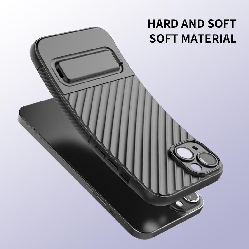 Θήκη τηλεφώνου TPU με κυματιστή υφή για iPhone 14 Plus με προστατευτική μεμβράνη φακού (Μαύρο)