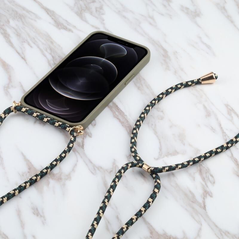 Θήκη τηλεφώνου για iPhone 14 Plus από άχυρο σίτου + TPU αντικραδασμική με κορδόνι λαιμού (Μαύρο)