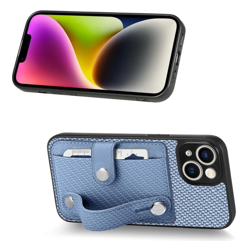 Θήκη κινητού για iPhone 14 Plus με καρδιοδέκτη, βάση στήριξης, κάρτες και εργαλείο μαχαιριού (Μαύρο)