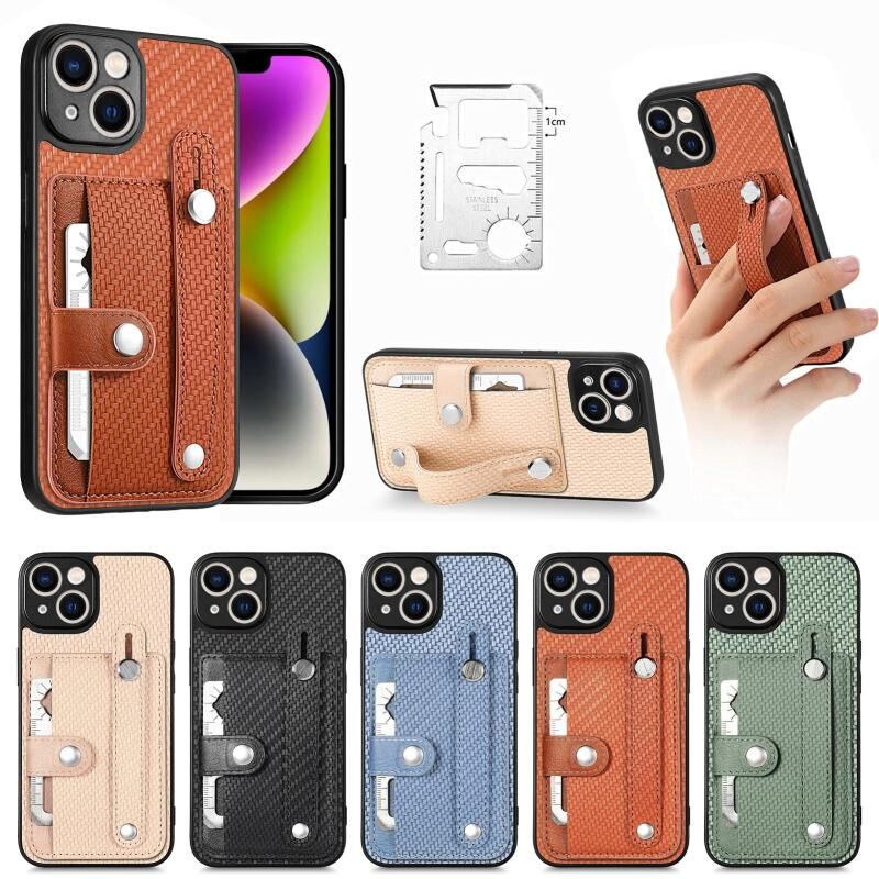 Θήκη κινητού για iPhone 14 Plus με καρδιοδέκτη, βάση στήριξης, κάρτες και εργαλείο μαχαιριού (Μαύρο)