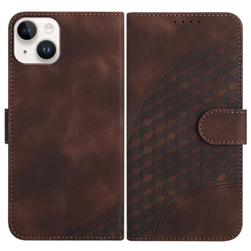 Θήκη δερμάτινη για iPhone 14 Plus YX0060 με ανάγλυφο σχέδιο κεφαλής ελέφαντα και κορδόνι (Καφέ)