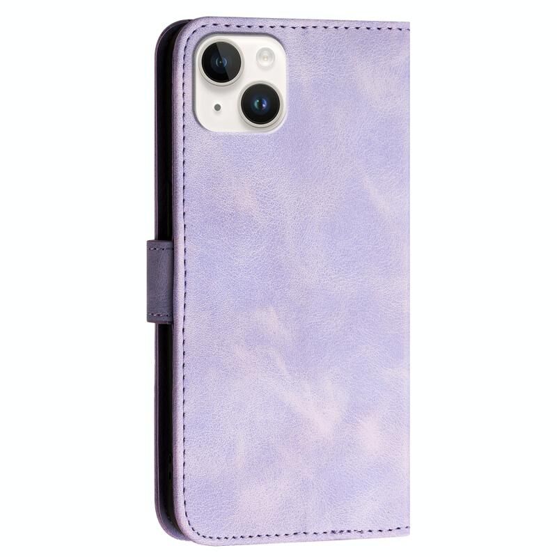 Θήκη τηλεφώνου τύπου flip από δέρμα με ανάγλυφο σχέδιο πλέγματος και πεταλούδας για iPhone 14 Plus YX0080 με κορδόνι (Σκούρο Μπλε)
